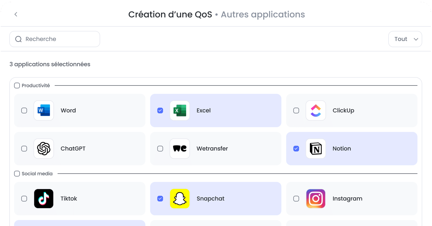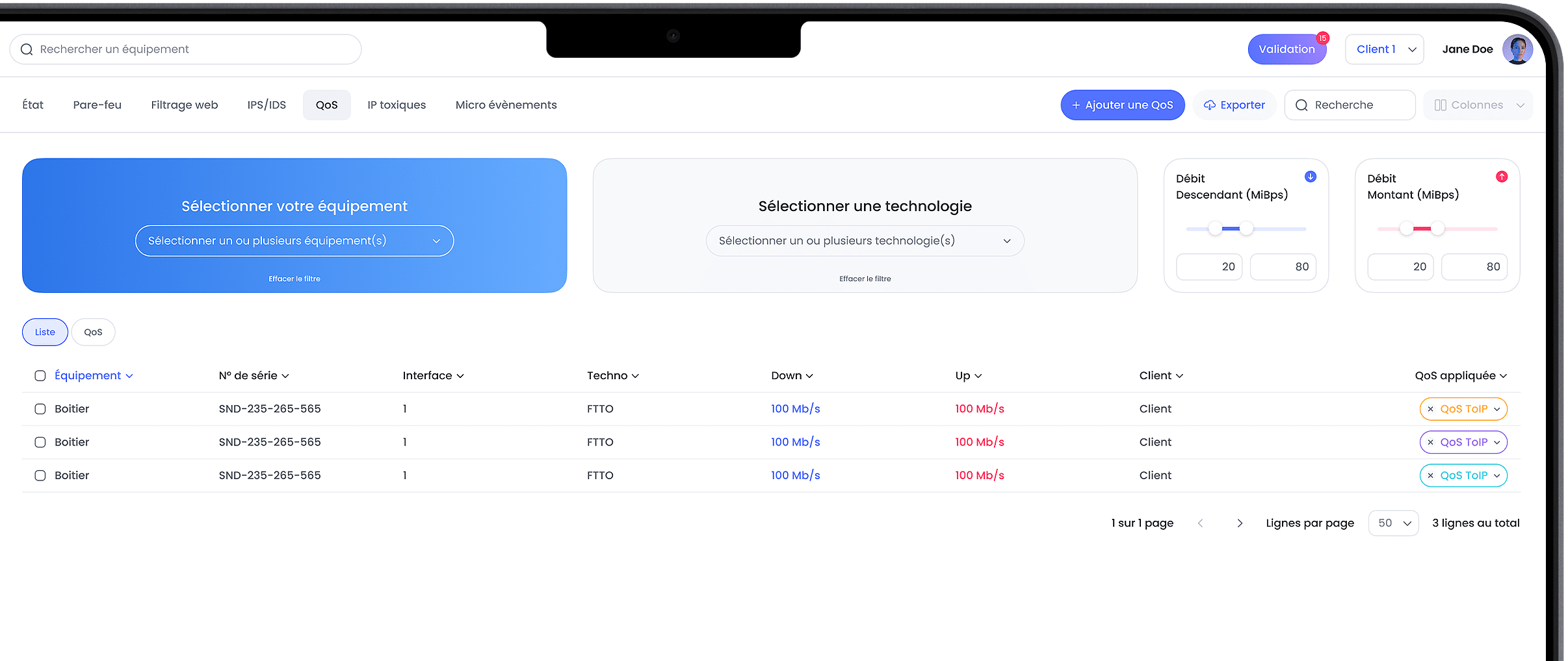 WANUP intègre un service avancé de Qualité de Service (QoS) applicative, s’appuyant sur plusieurs classes de services (CoS) pour garantir un usage fluide et optimisé du réseau. Grâce à la reconnaissance de plus de 200 applications, notre solution identifie, catégorise et priorise chaque flux en fonction des besoins métiers.