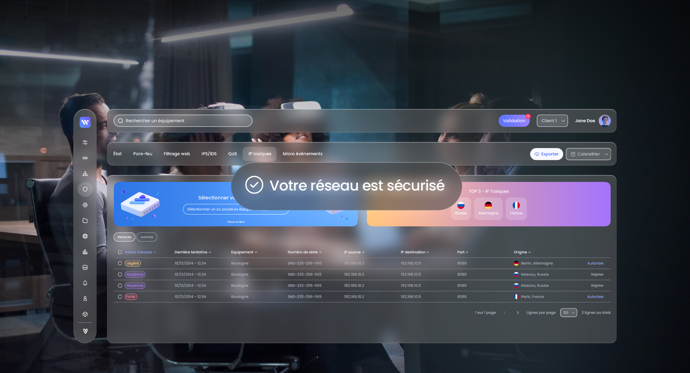 Dans un paysage cyber de plus en plus hostile, WANUP intègre une fonctionnalité avancée de détection des IP toxiques, complémentaire aux systèmes IPS et IDS déjà décrits. Ce module repose sur des bases de données payantes constamment mises à jour, recensant les adresses IP réputées malveillantes à l’échelle mondiale.