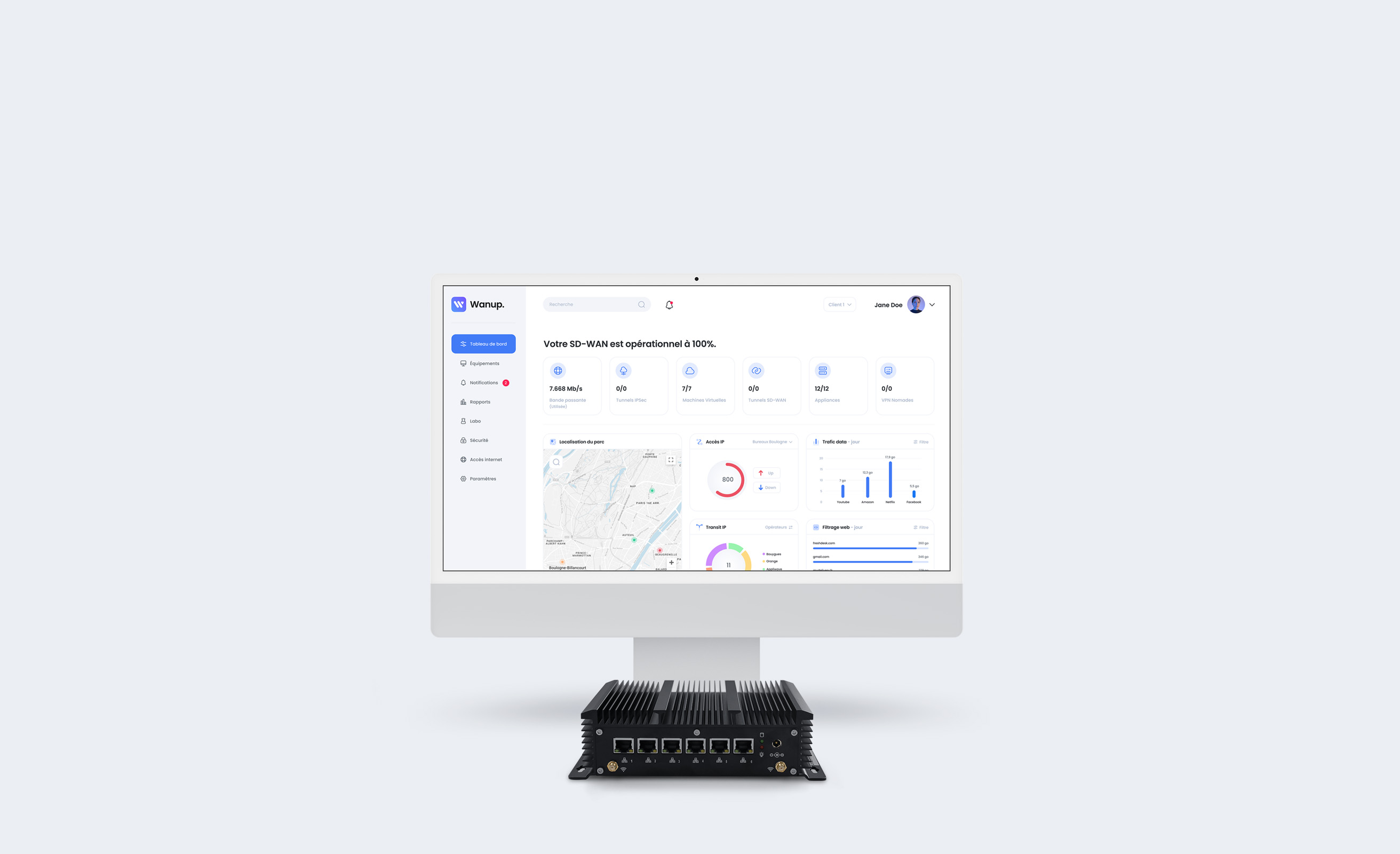 Dans un monde où la mobilité et le télétravail sont omniprésents, WANUP adopte une approche Zero Trust avancée, garantissant une sécurité réseau sans faille. Le principe est simple : ne faire confiance à aucun appareil tentant de se connecter en dehors de nos appliances physiques ou virtuelles.
