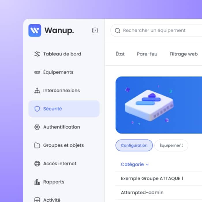 Notre solution WANUP intègre toutes les fonctionnalités essentielles telles que ZTNA, FWaaS, CASB, SWG, IPS, IDS, IP toxiques, accès distants SD-WAN, VPN « always-on » et gestion des micro-événements.